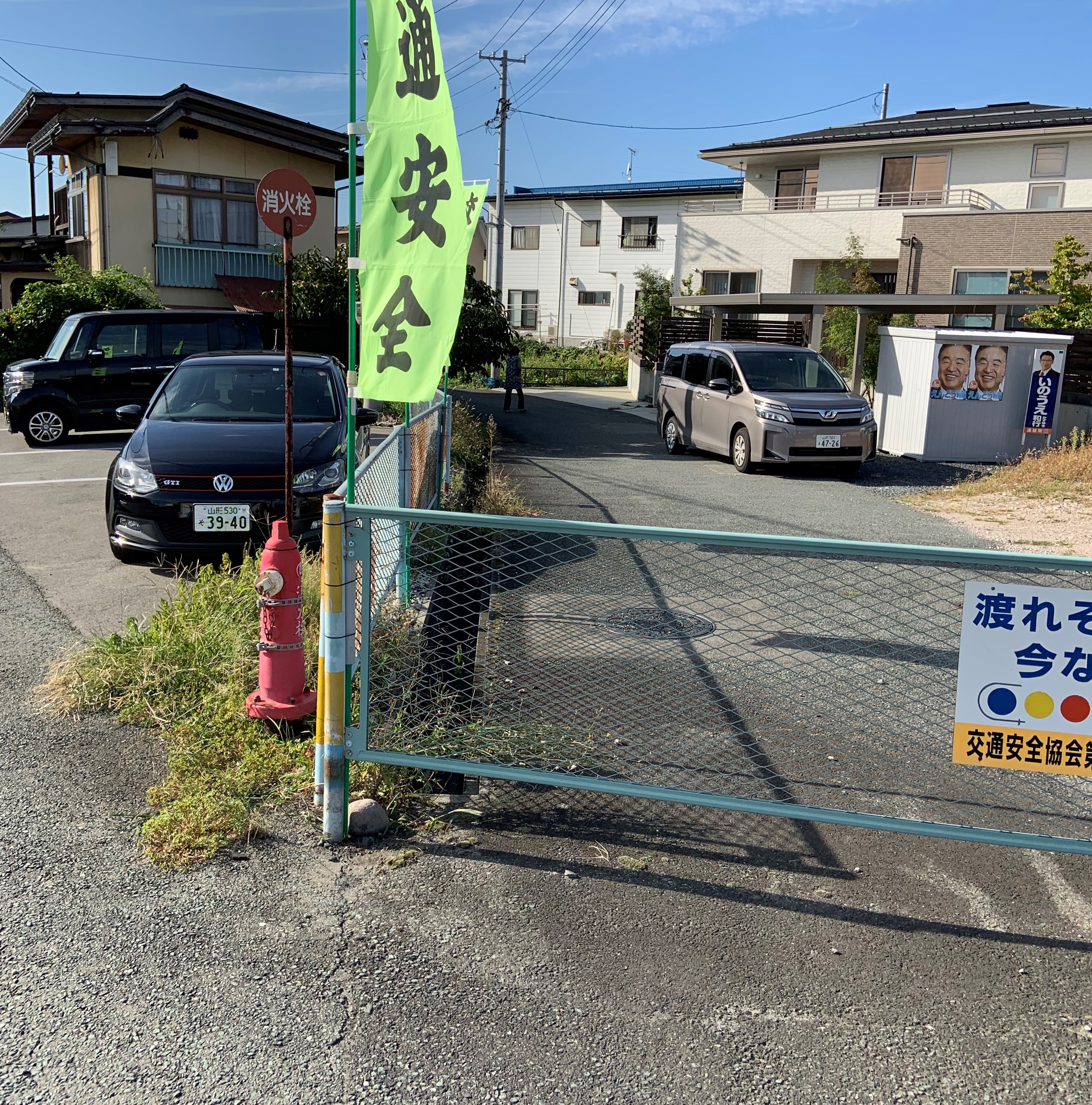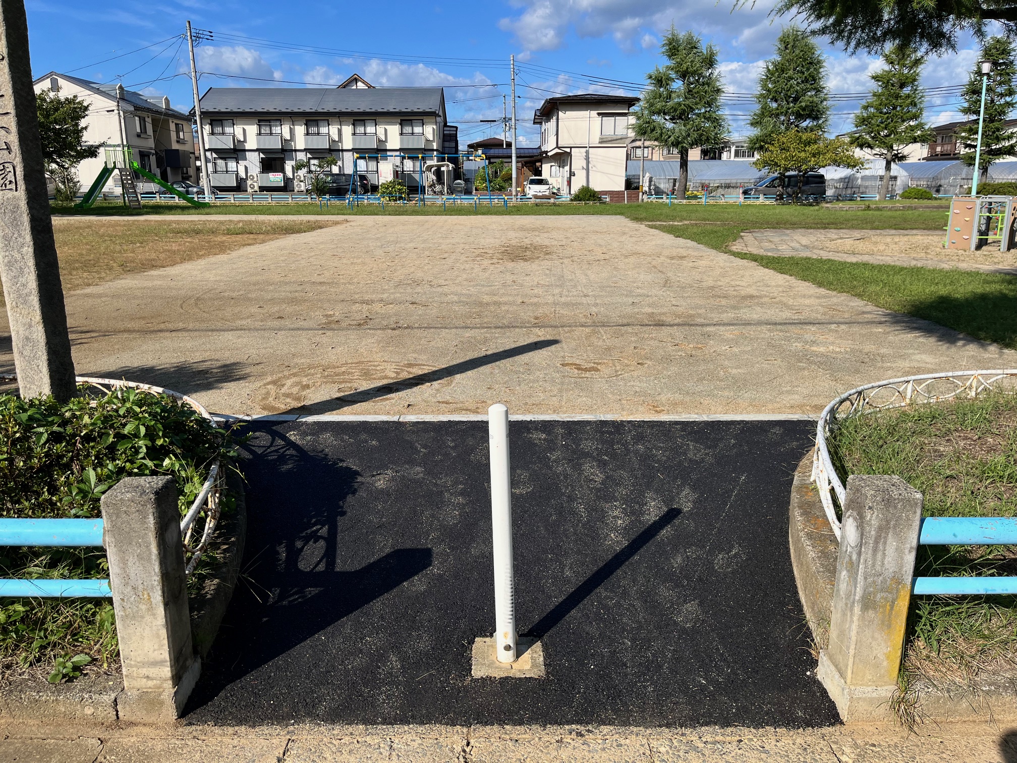 フェンス撤去し、出入口拡幅。新たなフェンス設置及びポール設置 -